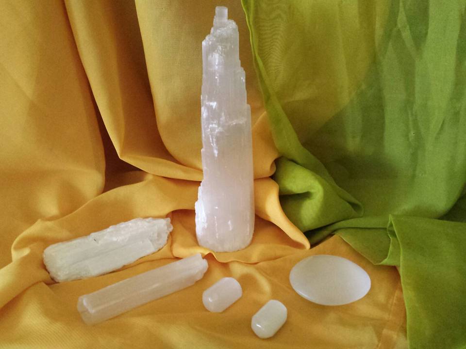 - Devido ao trabalho que a Selenite faz directamente com os chacras superiores e transpessoais, é útil que, ao trabalhar com ela, se usem simultaneamente cristais de ancoramento nos pés, como a Hematite, por exemplo. Assim a energia mantém-se equilibrada e sustentada.